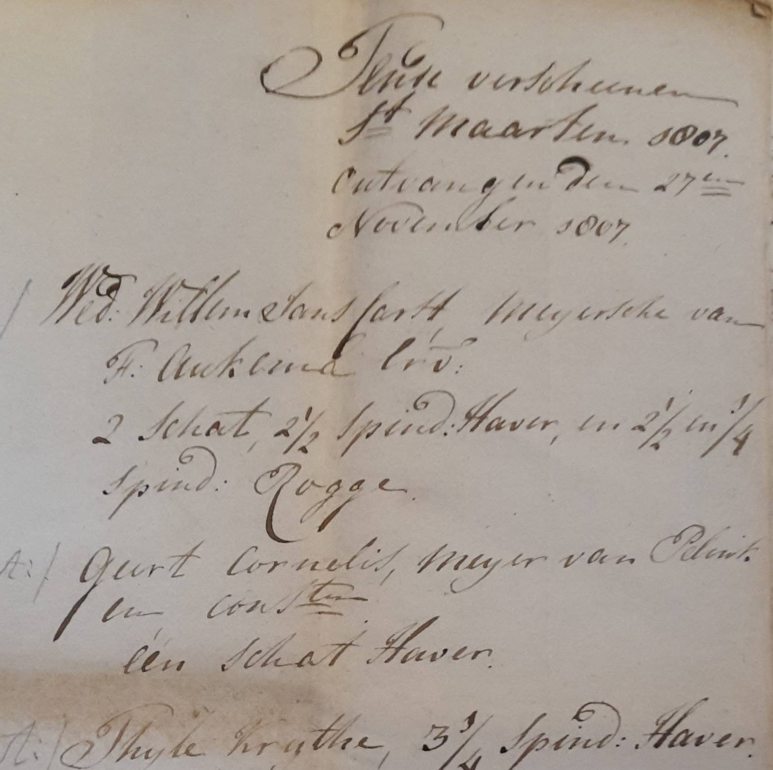 Deel uit de Roggegelden van Roden 1807, belasting over de opbrengst van land (Rogge, haver)