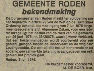 In 1975 wordt een bestemmingsplan voorbereid voor een industrieterrein tussen de Leutingewolderweg en de Rodervaart, ten zuiden van wat nu de Rondweg is.