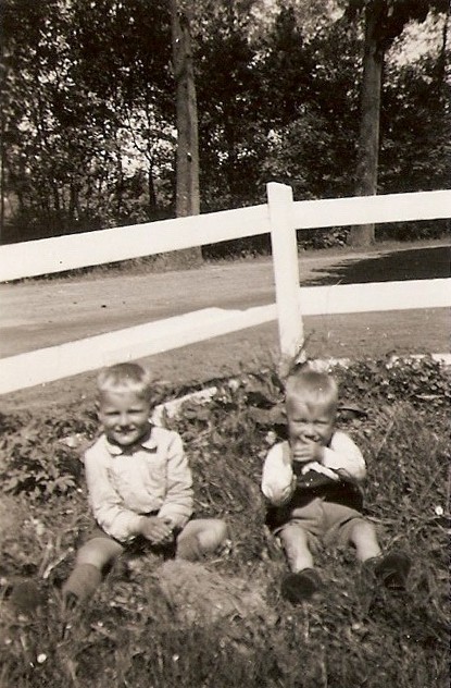 Bouke Meek en Hendrik van der Schans achter het Cafe, jaren veertig.