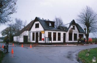 Cafe in de jaren dertig. De weg is een sintelweg.