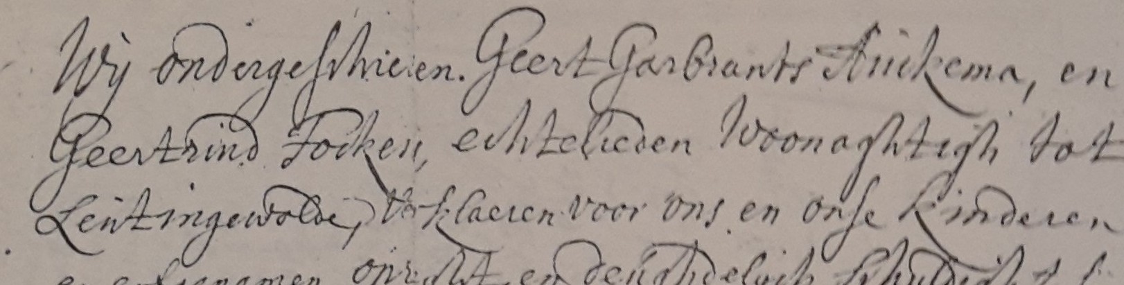 1722: Overeenkomst met Geert Aukema en Geertruid Fokkens