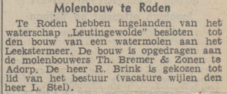 Besloten werd tot de oprichting van het waterschap Roderwolde (1863) en later waterschap Leutingewolde en de aanleg van de Leutingewolder-polder. Bij koninklijk besluit van 23 augustus 1866 wordt dit bekrachtigd. De oppervlak van deze polder was 710 hectare.