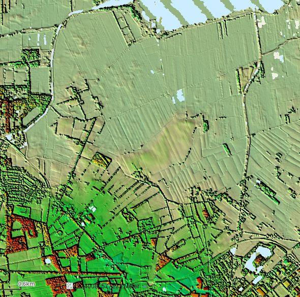 Op onderstaande Shaded relief kaart (Bron R41) is de bomenverdeling in het gebied goed te zien: